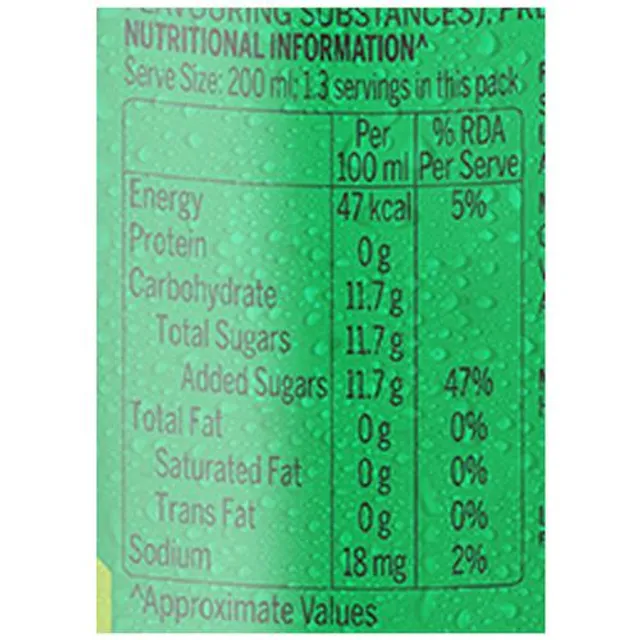 Carbonated water, citric acid, sugar, and sodium citrate, Natural Lemon and Lime Flavors.