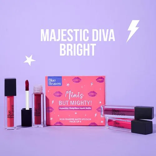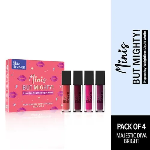 Blue Heaven Minis But Mighty Hyperstay Weightless Liquid Matte Lipstick – Long Lasting Highly Pigmented 6 ml (Pack of 4)