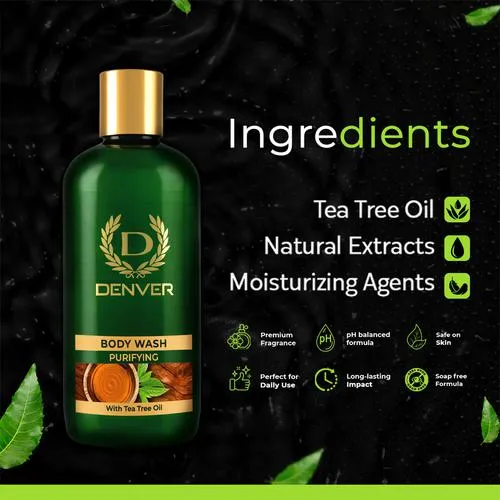 DENVER Perfume is a fragrant liquid that is applied to the skin or clothing to provide a pleasant and long-lasting scent. Perfumes come in a wide range of scents, from floral and fruity fragrances to musky or woody scents. Each perfume is composed of several layers of fragrance notes, including top notes, middle notes, and base notes. It’s also important to consider your individual preferences and the occasion for which the perfume will be worn. It is a compelling scent for the charming, with a flair of magnetic elegance. Apply it on a daily basis or for special events; the bold, fresh aromatic perfume makes it an alluring fragrance for all circumstances. Nourishing & non – stipping the DENVER Purifying Bodywash with its soap-free formula deep cleanses your body while being mild on your skin. The unique gel formula and natural ingredients in this body wash give you a thick lather which lends a burst of freshness and makes you feel rejuvenated after every shower. DENVER Purifying Tea tree body wash is a type of cleanser that contains tea tree oil as one of its main ingredients. Tea tree oil is a natural essential oil that is extracted from the leaves of the tea tree plant, which is native to Australia. It has been used for centuries for its medicinal properties and is known for its antibacterial, antifungal, and anti-inflammatory effects.