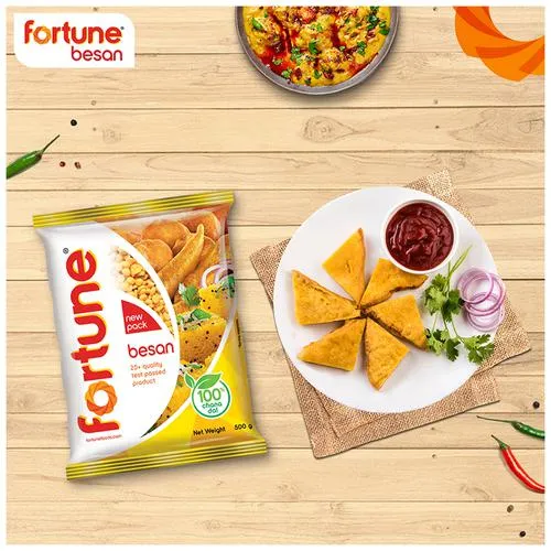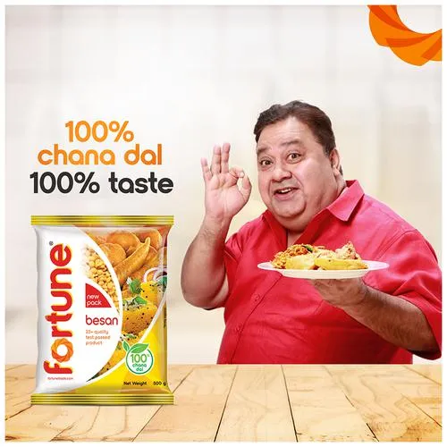 Fortune Besan is hygienically made from 100% chana dal and passes through more than 25 quality checks and processed with advanced grinding technology which retains the flavours and aroma of natural chana dal. The highest grade of chana dal and only standardized coloured chana dal passes through our advanced colour sortex machine for grinding to give consistency in Fortune Besan leading to the finest taste of any recipe.