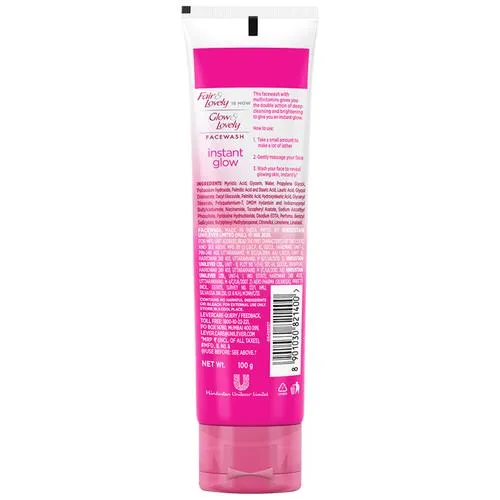 Presenting Glow & Lovely Insta Glow face wash (Formerly know as Fair & Lovely) Enriched with a multivitamin like Vitamin B3, C & E to nourish and moisturise from within instantly to give you a glow. Deep cleanses to remove dirt and pollution from deep within your skin with every wash. Exfoliates to remove dead skin cells and helps remove bacteria causing germs to unclog pores with every wash. Washes away all skin impurities and boosts skin defence. The facewash effectively cleanses your skin to give you instant moisturisation for your skin. Specially formulated with glycerine, myristic acids, and enriched with multivitamin, the face wash ensures a bright glowing clear skin.