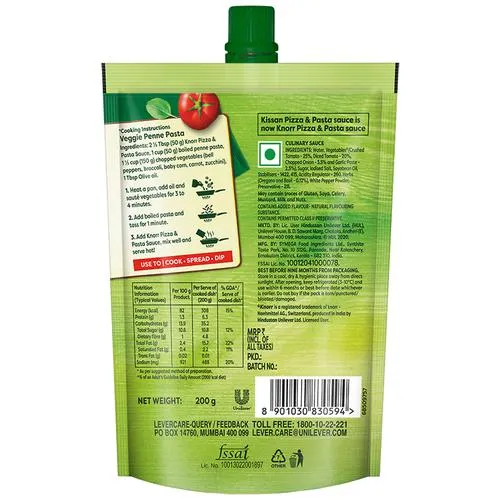 Kissan Pizza & Pasta Sauce is a multipurpose sauce that can be used as a dip, spread or cooking sauce – an assured hero for all the continental dishes, be it a spread, for a pizza base, a mix for red pasta, a marinade or just as a dip with your favourite vegetables. With these sauces in your fridge, it is easier and quicker than ever to make your very own pizza and pasta at home! Kissans international sauces are packaged in easy-to-use 200g pouches so that you can easily drizzle, dip, spread, cook on to any dish of your choice and reseal it to restore its freshness. Started in 1934, Kissan is a popular brand in India. Kissan is more than just jams, ketchup, sauces and squashes. It’s all about kids eating happily & growing up happily. Kissans tasty and natural goodness keeps both, mothers & kids happy. The brand’s reassurance to mothers is that they can make snack or tiffin times fun yet wholesome with the Kissan range of products that are made with 100% natural ingredients! It’s easy to cook Pizza Pasta at home with Kissan Pizza pasta sauce. It can be used in cooking, or it can be used as a dip or a spread. It is made from 100% real vegetables. Enjoy it with your favourite dry snacks. It comes in an attractive pouch.