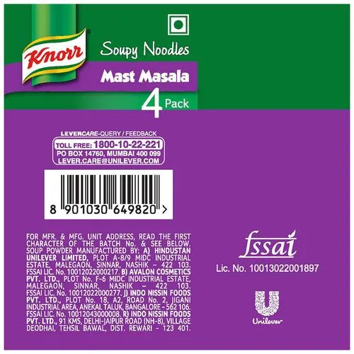 Knorr Soupy Mast Masala Noodles has the goodness of soup along with the fun of noodles, making it a fun evening snack. Knorr Soupy Noodles are spicy and slurpy and make for a tasty meal. At Knorr, we love flavours! Our Chefs have crafted Knorr Soupy Mast Masala Noodles with great care and precision, combining the finest ingredients in perfect combinations. Our Noodles are made with 100% real vegetables and are free of any added preservatives. Knorr Soupy Mast Masala Noodles are the perfect choice for making snack time fun and enjoyable. Your favourite Knorr Soupy Noodles are available in three pack sizes – singles for small hunger pangs and multipacks of 2 and 4, if you feel like sharing! Now also enjoy your favourite instant noodles in exciting Chinese Flavours – Knorr Chinese Schezwan, Knorr Hot & Spicy Noodles.