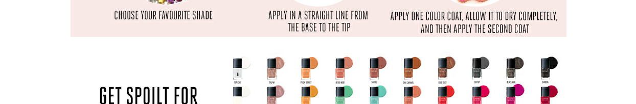Choose from a wide range inclusive of nudes, reds, pinks, glitter, and metallic shades that you can wear every day, or during festivities. Its new design includes the innovative applicator that glides easily onto your nails to a deliver glossy finish in one quick swipe. Get lasting rich colour payoff with an intense glossy finish in 15 shades.