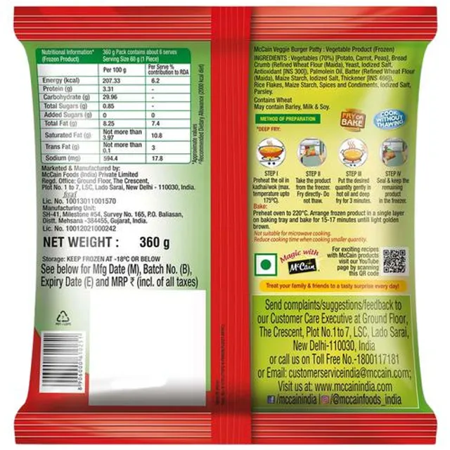 Manufactured by: McCain Foods India PVT LTD, SH – 41, P.O.Baliasan, Mehsana – 382732, Gujarat, India