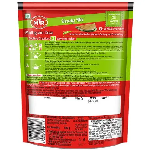 MTR Multigrain Dosa Mix extracted from high-grade pure rice, urad dal and fenugreek. Dosa is a south Indian traditional dish that is rich in taste and low in fats. It’s a delicious comfort food which you can enjoy every evening with family and friends.