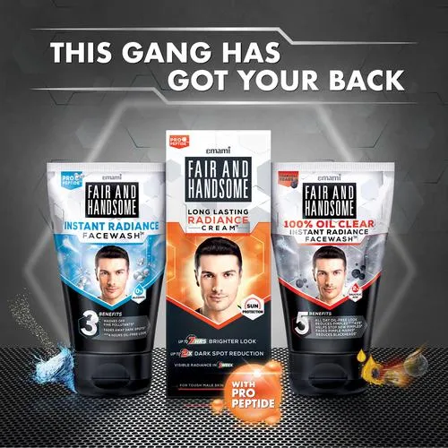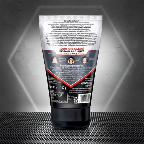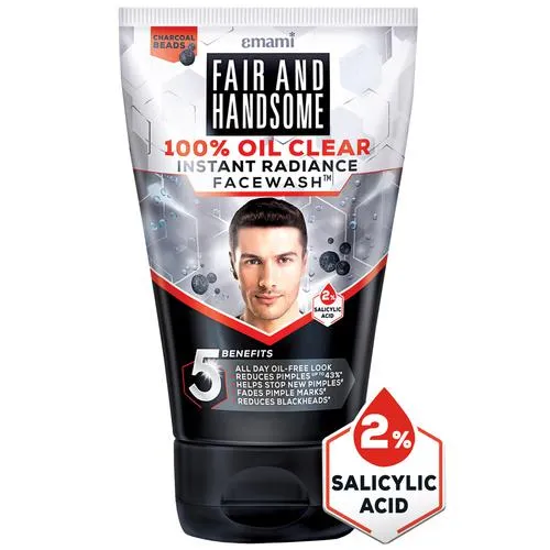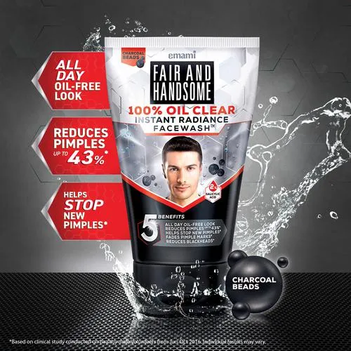 Through pioneering research by skin care experts, Fair and Handsome have exclusively formulated face washes for tough male skin to help deep cleanse and improve it with every use. Fair And Handsome 100 % Oil Clear Face Wash has powerful Charcoal Beads which go deep inside the skin to fight 5 oily-skin problems. Charcoal Beads are powerful pore-cleansers and natural exfoliators, which help remove excess oil and pimple-causing bacteria to give an instant glow.