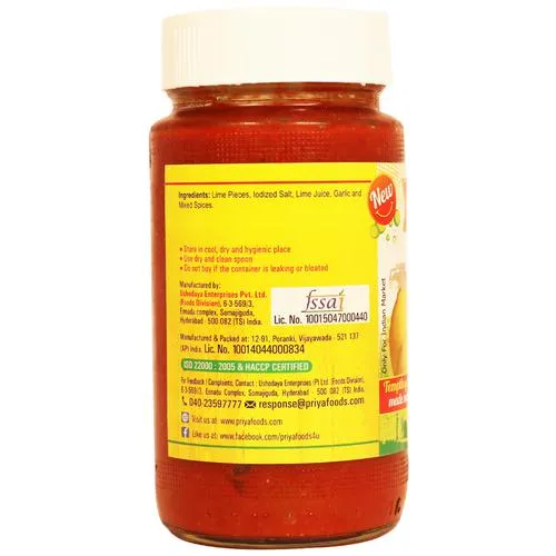Priya brings you the lime and lemony pickle that has redefined the prominence of curd rice. Made out of farm fresh lemons and ensuring the home-made touch, Priya’s lime pickle is not just yummy but magical in pepping up the dining mood at any time, whether it is breakfast or travel snacks. This tangy pickle is the perfect accompaniment for all your moods and dishes, be it the South Indian favourite curd rice or Dosa/Idly or Roti/Paratha.